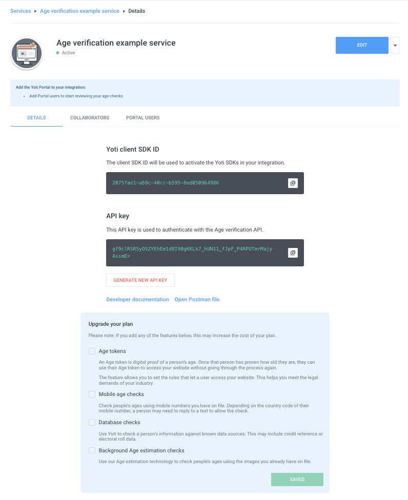 If you have multiple websites/platforms it can be useful to create separate services for all your different websites/platforms. This way Yoti can report on each of these different services separately.