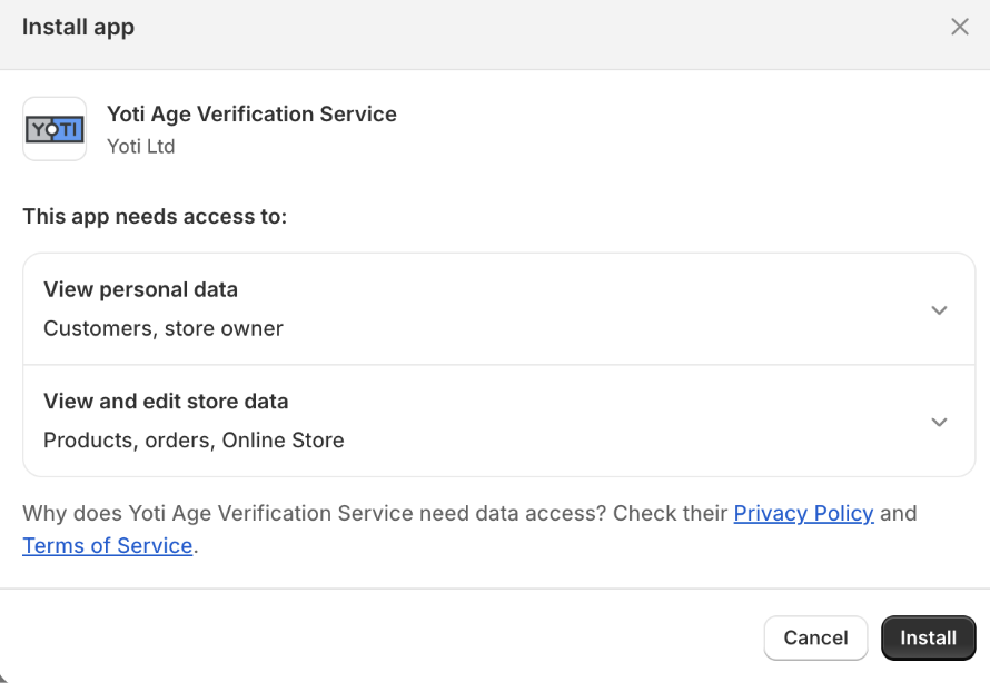 Welcome to the documentation for integrating Yoti Age Verification with Shopify.