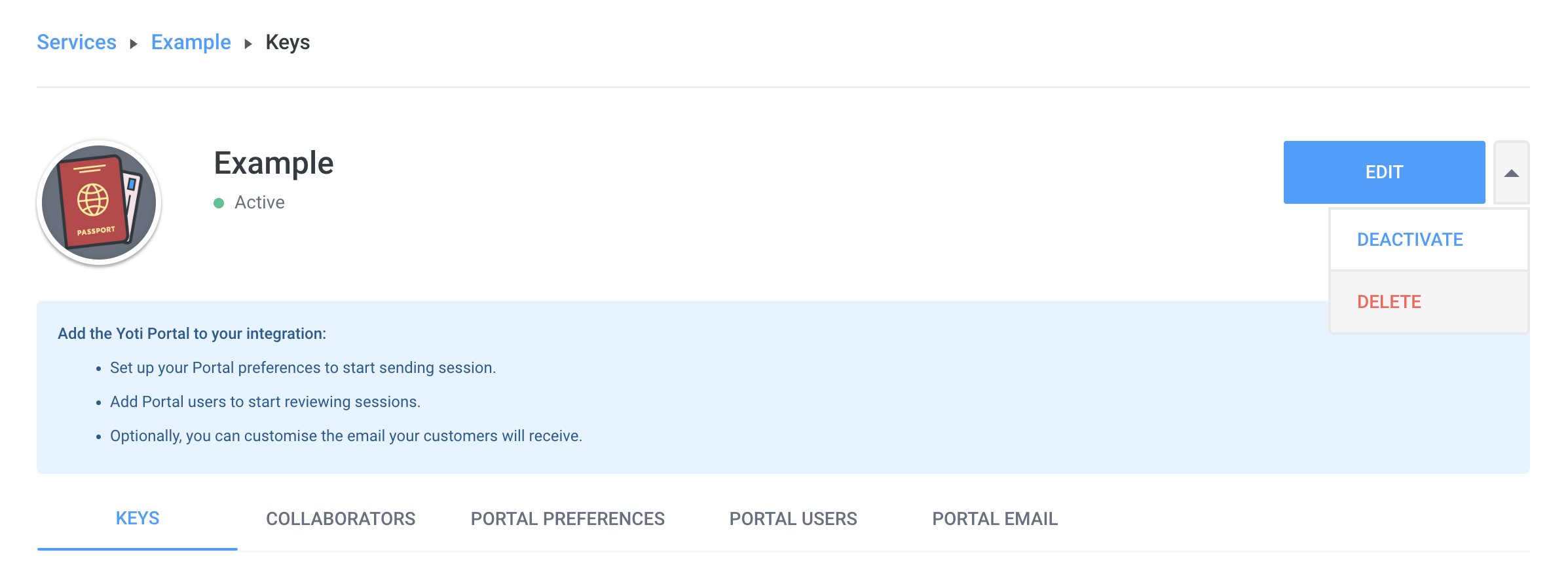 Once you have completed the above steps, you will be able to activate your Yoti service by clicking the Activate button in the top right.